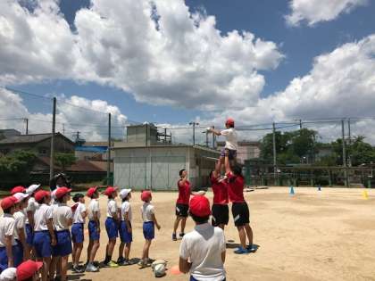 最後に、ラグビーの試合でラインアウトしたボールをスローインするときによくやっている、「リフト」を希望者全員が体験しました。予想以上の高さに驚きながらも、みんな上手にボールを受け止めていました。