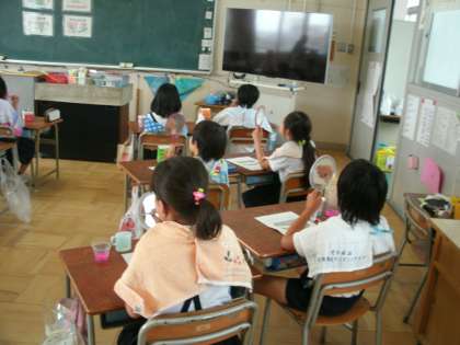 2時間目に2年生、3時間目に3年生が、保健室の先生に歯みがきの正しいやり方を教えてもらいました。 写真は3年生です。大きな歯の模型を使って、歯ブラシをどう動かしたらよいか、学習しました。歯の表面と歯茎の境目は横みがき、歯と歯の間のくぼみは縦みがき、奥歯のかみ合わせは溝みがき、前歯の裏側はかかとみがきと4つの技を組み合わせて磨きます。また、染色液を使って、普段磨けていない場所はあるか、それはどこかを調べて、スケッチをしました。そのあと、4つの磨き技で赤い部分をきれいにこすり落としました。人生100年の時代です。虫歯や歯肉炎にならないよう、忙しくても丁寧に歯を磨きましょう。