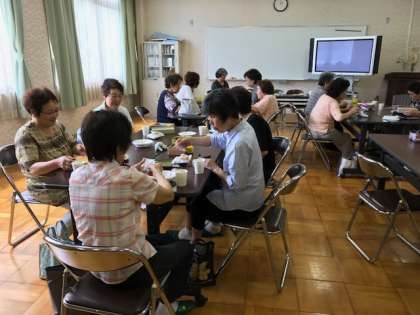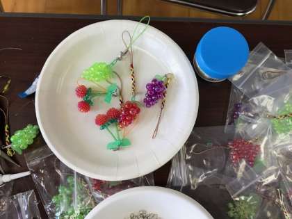 第4火曜日の今日、今年度第1回目の服小学校生涯学習手芸教室が行われました。カラフルで、涼しげなビーズを使って季節の果物のマスコットができました。月に1度ですが、同好の士が集って、おしゃべりしながら、かわいい小物を作っておられます。