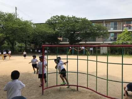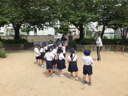 続いて50分からは、5時間目の生活科の授業で、学校の前の公園を探検しに行きました。