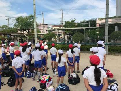 夏らしい青空のもと、全員揃って2泊3日の林間学舎に出発しました。