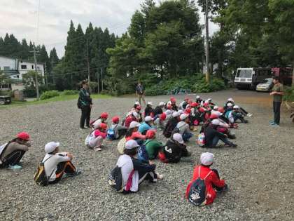 天候は曇り。やまなみさんのスタッフ、けんちゃんから注意を受けて、いよいよ登山に出発です。