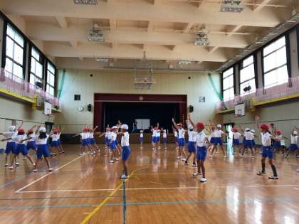 3年生と4年生が合同で運動会のダンス種目の練習を始めました。のみこみが早く、すぐに曲に合わせて、かっこよく動けるようになりました。本番が楽しみです。