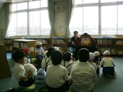 今日も読み聞かせのボランティアさんが来てくださいました。紙芝居は、「まんじゅうのすきなとのさま」。おまんじゅうが大好きなお殿様が、ふつうのおまんじゅうでは飽き足らず、お饅頭屋さんにもっと大きなまんじゅうを作ってくるようにと言ったところ、できたお饅頭は、おうちくらい大きくて、お殿様が梯子をかけてお饅頭の上に登ります。「もっと大きくせよ」とお饅頭屋さんに言うと、おまじないをかけてお饅頭をさらに大きくしていきます。だんだん怖くなってきたお殿様。「小さくせよ」と言ってもお饅頭屋さんははるか下の方で、声が届きません。そしてついにお饅頭は破裂してしまい、お殿様はお城の池にチャポンと落っこちてしまうのでした。欲張ってはいけないよと言う教訓に満ちたお話でした。