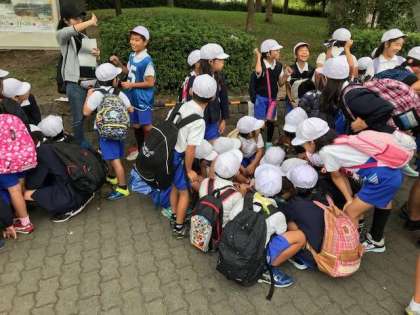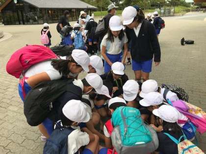 オリエンテーリングの最初の課題、スタート問題に班ごとに取り組んでいます。合格した班から出発するので、みんな一生懸命です。