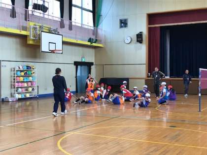 2時間目に、西淀中学の体育の先生お二人が来られて、ソフトバレーボールの出前授業をしてくださいました。準備運動のことを「アップ」というのがとても新鮮な響きで、6年生のみんなも中学進学が近づいていることを感じて少し緊張しながらも、懸命に言われた課題に取り組んでいました。残念ながら、2時間目の途中で来客があったので、ゲームの写真は撮れませんでした。最初の写真は、体育すわりの姿勢からのダッシュ、あとの2枚はうつぶせに寝そべった姿勢から寝返りを打って仰向けになり、ダッシュをするところです。