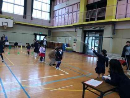 来年度入学予定の子どもたちが福小学校の体育館に来てくれ、1年生がおもてなしをしました。司会も1年生が行い、コマ回し、けん玉、あやとり、なわとび、ボウリング、お手玉、ペンイ、ビー玉落としなどのお店で、新1年生たちと仲よく遊びました。「楽しかった!」と言ってもらって、1年生たちもうれしそうでした。他の学年のひとたちも、みなさんの入学を楽しみに待っています。早く春になるといいですね。