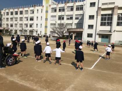 久しぶりに寒波がゆるんだ昼休みの校庭では大勢の子どもたちが遊んでいました。