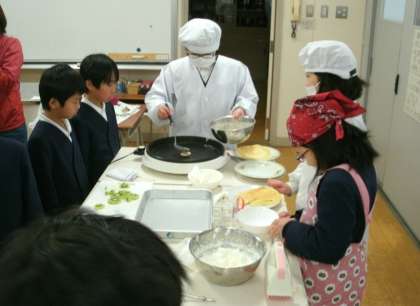 写真はティーボールをやっているスポーツクラブ、タブレットを使ってゲームをプログラミングしているパソコンクラブ、クレープを作っている料理・手芸クラブです。