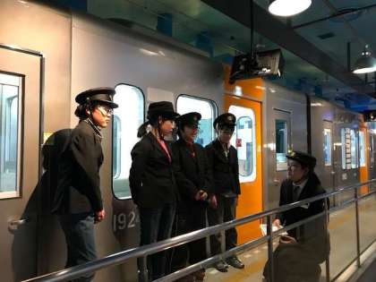 いつも見慣れている阪神電車が、キッザニアにもあります。運転手さんや車掌さんのお仕事を終えたところです。