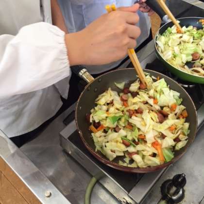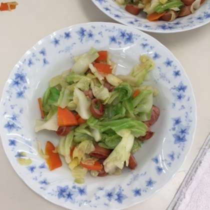 ウインナー、キャベツ、にんじんをフライパンで炒めました。