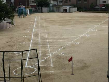 明日、5月17日(木)は、全学年スポーツ測定のソフトボール投げ測定が行われます。今日の放課後、教職員でライン引きを行いました。天候は曇りの予報です。どんな記録が出るのでしょうか?得意な人も、苦手な人も、一生懸命やることが大事です。ちなみに、明日は運動場は休み時間は使えません。