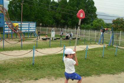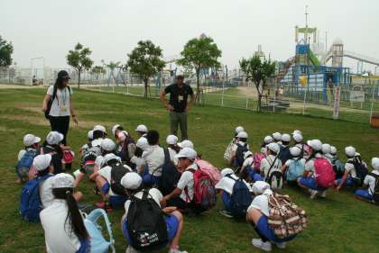 今日、3・4年生は、花園中央公園へ遠足に行ってきました。5月2日(水)に行くはずだったのが、雨で延期になりました。今日はみんなの思いが通じたのか、天気は晴れ、とまではいかなくても、曇り空。遊ぶにはちょうどいい天気でした。2019年、ラグビーワールドカップが行われる花園ラグビー場の横を通り、中央公園へ。11時30分まで遊具で遊びました。フィールドアスレチックか、アミューズメントパークか、というくらいの滑り台などがありました。みんな汗だくで、全力で遊びました。