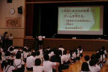 今日の児童集会は、7月4日(水)に行われる「夏の集い」の打ち合わせを行いました。「夏の集い」は、他学年の児童とのふれあいの場を設定し、オリエンテーリングを楽しみながら、人間関係を深めていく目的としたもので、たてわり班ごとでお店を開きます。その内容の確認とお店を決めていっています。どんなお店にしよう?みんな楽しんでくれるかな?いろんなアイデアを出しています。