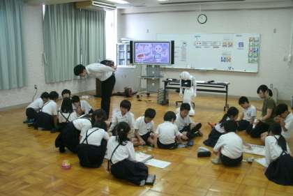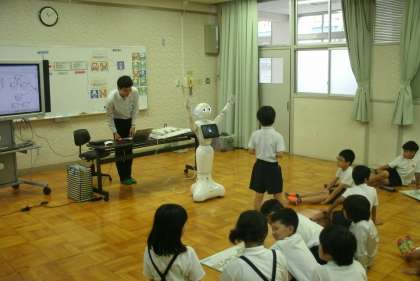 今日のプログラミング学習は4年生が行いました。今日もペッパー君が手伝ってくれました。大忙しです。学習内容は「ペッパー君がパン屋さんになって、パンの紹介をする」というものでした。自分たちで、ペッパー君が紹介するパン、紹介文、そして、紹介する時の手振りと、その接続を考えました。ペッパー君はちゃんとパンの紹介ができたのでしょうか?