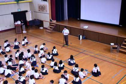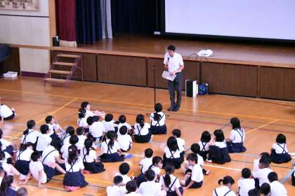 5時間目、プール集会に引き続き、学校保健委員会の発表を行いました。これもお家の方に見ていただきました。健康美化委員会と給食委員会から「早ね・早おき・朝ごはん」のテーマで発表をしてもらいました。次に福小学校の内科医の先生からお話をしていただきました。その後、たてわり班での話し合いがあり、話し合ったことの発表もありました。みんな真剣に考えました。お家の方と、今日のことについていろいろ話をしてみてください。
