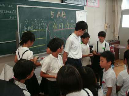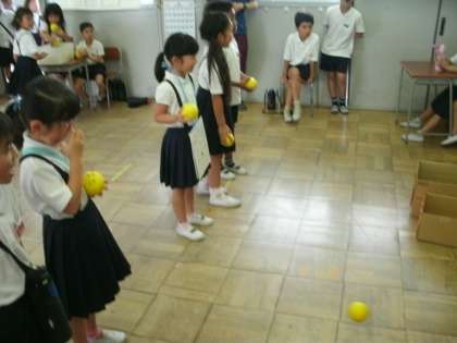 今日は、夏の集いが開催されました。「みんな笑顔で協力し合う夏の集い」を”めあて”とし、全校児童で5月から企画してきました。たてわり班で、ゲームを自分たちで考え、場所・ルールを決め、準備をし、お店として他のお友達に楽しんでもらうイベントでした。お店では店員として、レクリエーションとして上級生は下級生を引率し、とても学年を超えたチームワークができていました。とても楽しそうです。