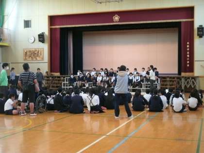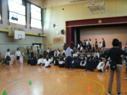 今日の児童集会〜1時間目は、11月17日(土)に行われる学習発表会での、オープニングの練習を行いました。特に、歌う時の立ち位置や移動の仕方の確認を行いました。