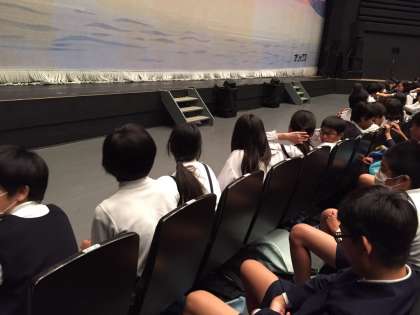 今日、6年生はオリックス劇場へ、劇団四季のファミリーミュージカル「魔法をすてたマジョリン」の鑑賞に行きました。魔女のマジョリンと人間たちの、心の触れ合いや思いやりや優しさを私たちに伝えてくれるミュージカルでした。一緒に歌う場面などは、照れがあったと思いますが、何か感じ取ってくれたかな、と思います。6年生はどんなことが印象に残りましたか?ニラミンコはナイスキャラでしたね。ダンスもキレキレでしたね。そう思うと、楽しい劇でした。学習発表会にもつなぐことはできるかな?