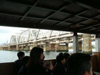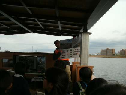 現在、淀川にかかる阪神なんば線の橋梁は高さが低く、橋脚の間隔が狭いため、水が流れにくく、先日の台風21号でも淀川の水が急上昇しました。この課題に対し、国土交通省は阪神電鉄と大阪市と協力し、15年かけて新しい橋梁を今年から架け替える工事を実施することになりました。今日、国土交通省のお声掛けがあり、4年生は社会の授業で淀川について学ぶこと、これから成長する上で新しい橋梁に架け替えをしたこと、そしてこれから変わっていく淀川の風景を見てもらいたいとのことで、淀川巡視船に乗せていただくことになりました。天気も曇りで、少し寒かったですが、普段見ることのできない淀川を、クラスのみんなで見ることができて、テンションが上がっていました。国土交通省の皆様には、このような機会をいただき、感謝しております。