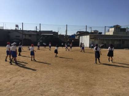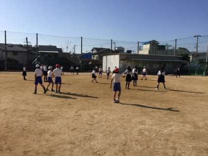 お楽しみ会、5年生です。ドッヂボールをしています。男女対抗戦です。とはいえ、男女とても仲のいい学年です。手加減はしていませんが、文句も出ません。ステキです。