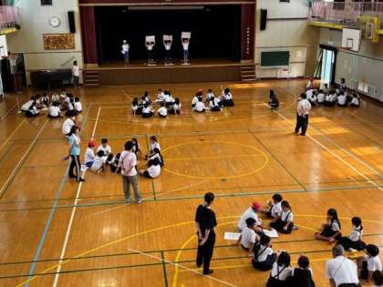 そのあとたてわり班でゲーム集会がありました。「福小学校」に関係のある3択クイズでした。