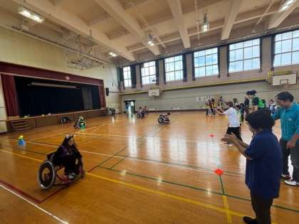 体育館では、競技用車いす体験のコーナーもあり、普段体験できない貴重な時間になりました。
