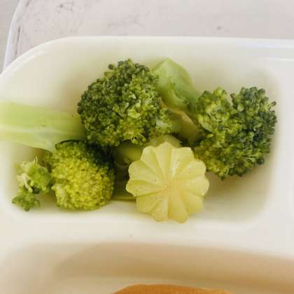 ブロッコリーのサラダには、茎の部分を型抜きした、ラッキーブロッコリーが入っていました。