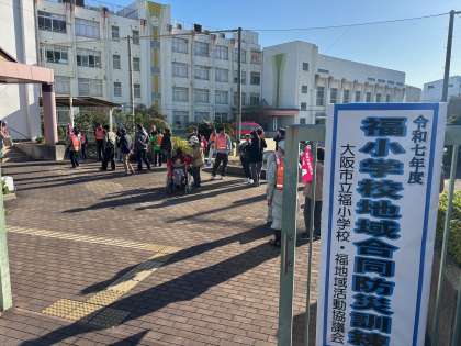 11月22日(土)土曜授業で、福地域活動協議会、西淀川区役所、消防署、地域の皆様とともに、地域合同防災訓練を実施いたしました。