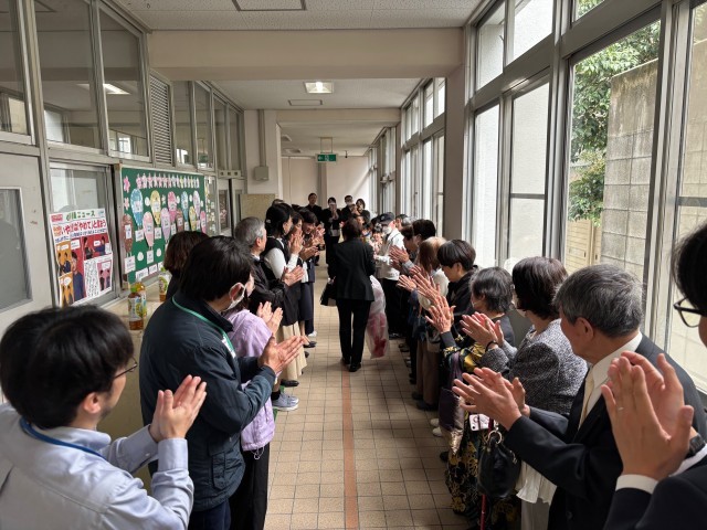 地域の皆様、PTA役員、教職員と多くの方々が参加され、名残を惜しむ心温まる離任式となりました。