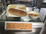 イカ天ぷら、フレッシュトマトのスープ煮、サワーソテー、パン、牛乳