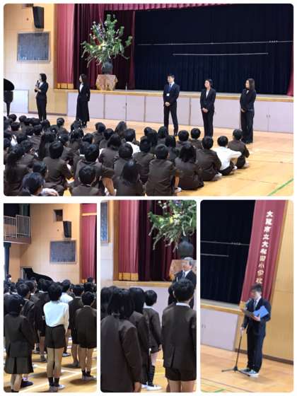 対面式では、昨年度末で異動・退職された教職員の方の紹介と、今年度より本校に着任された教職員の紹介がありました。