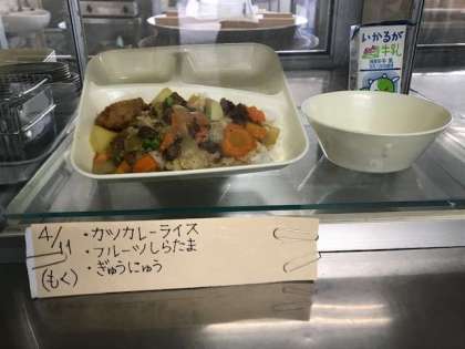 大人気のカレーライスとフルーツのデザート、美味しくいただきましょう!
