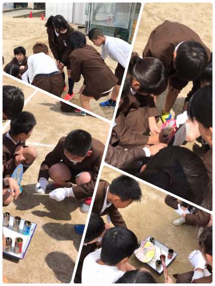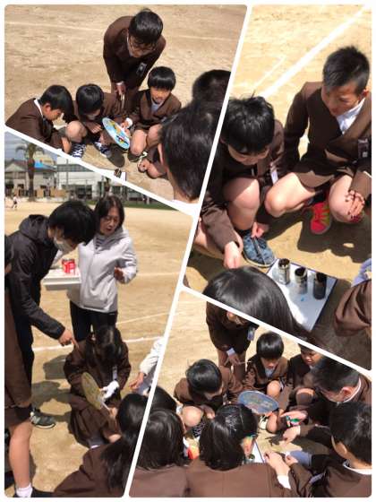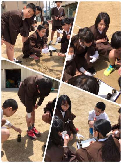 今日は運動場で、理科の実験をしました。今日から「ものが燃える時」の単元の学習が始まり、導入で燃やす条件を変えて、わりばしを缶の中で燃やしました。
