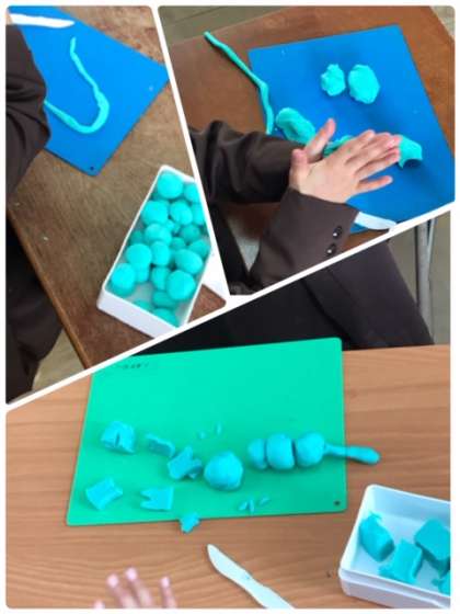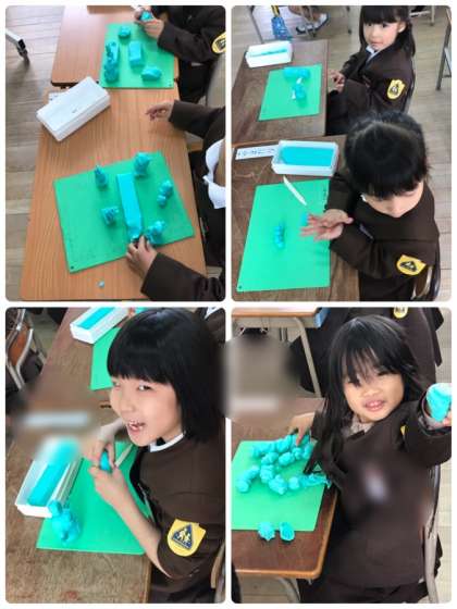 1年生が、ねんどを使って、だんごやひも、その他いろいろなものを作っていました。