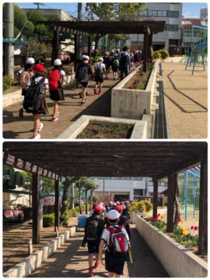 今日は、今年度最初の遠足です。5年生が兵庫県の甲山森林公園に行きます。