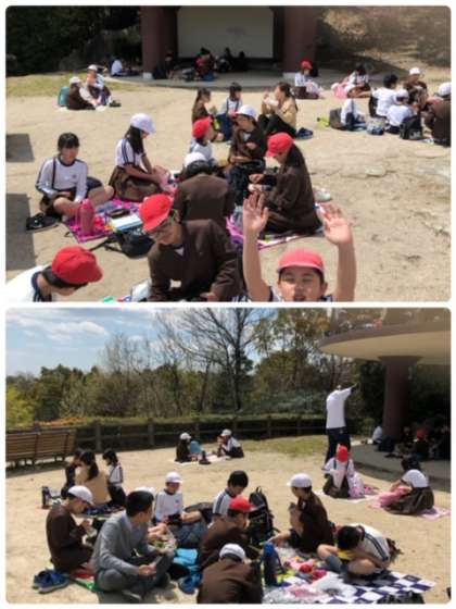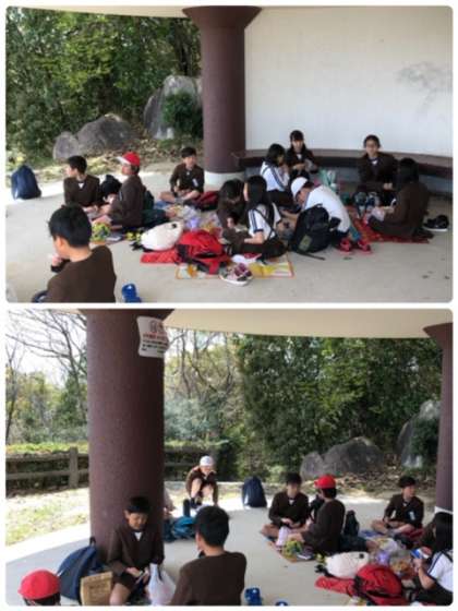 綺麗な景色を眺めながら、美味しくお弁当を食べています。