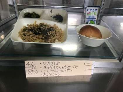 焼きそばは、人気メニューの一つです。子どもたちも嬉しそうに給食を運んでいました。
