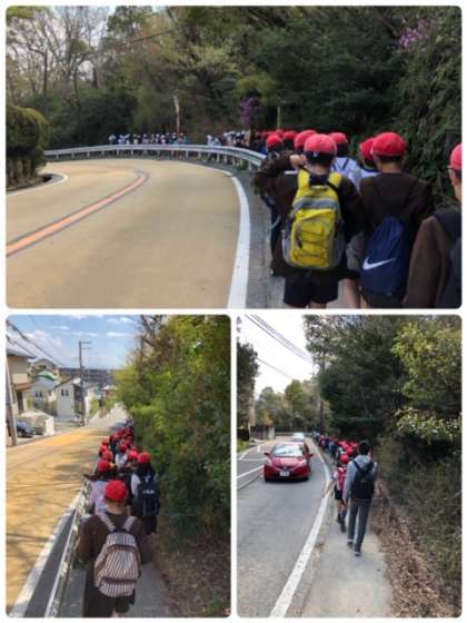 下り坂も列を整えて、歩く事が出来ました。無事、甲陽園駅に到着です。