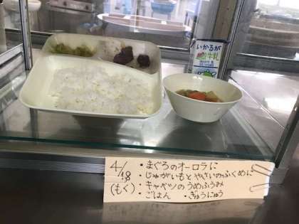 です。オーロラ煮は、ケチャップ風味で、子どもたちに人気メニューの一つです。