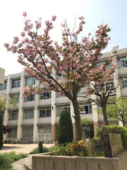 今年初の学習参観を祝って、八重桜が満開です。中庭と、保健室横のプロムナードにあります。ぜひご鑑賞ください。