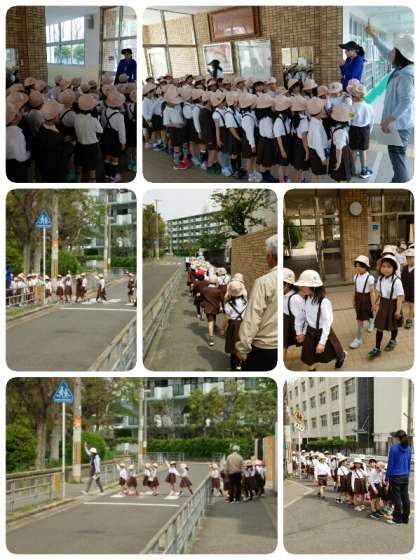 本日の二時間目に、1年生は学校周辺の歩行を通して交通安全について学習しました。