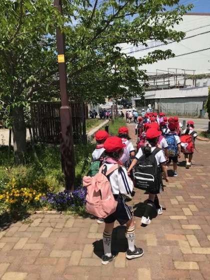 名残惜しいですが、元浜緑地を出発して、学校に戻ります。