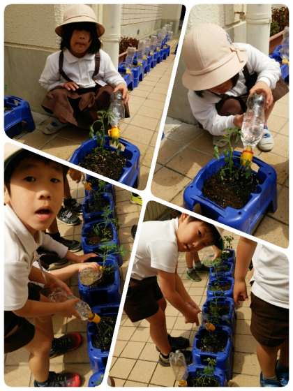 昨年のアサガオやチューリップに続き、これから毎日水やりをして、大切に育ててほしいです。