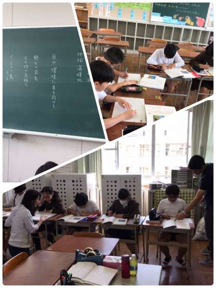 コースに分かれて、今まで学習してきた筆者の様々な表現の工夫を参考にしながら、自分なりにうまく書いていました。