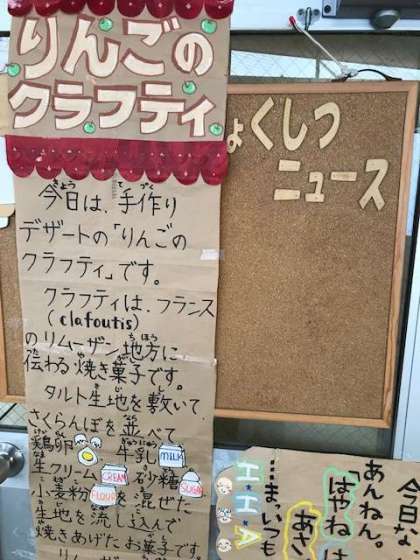 デザートは、りんごのクラフティ。甘くて美味しくて、食感もいい、人気のあるデザートです。