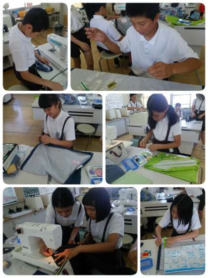 6年生の家庭科「布を用いた製作」の学習では、エプロンを製作します。