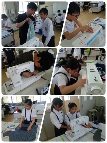 子どもたちは、エプロン製作に必要な材料や手順をしっかりと理解し、目的に合わせて手縫いとミシン縫いを使い分け、友だちと協力しながら製作を進めていました。