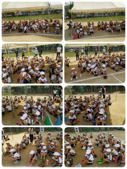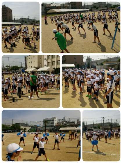 朝会後は、運動会の全体練習をしました。