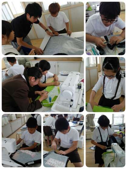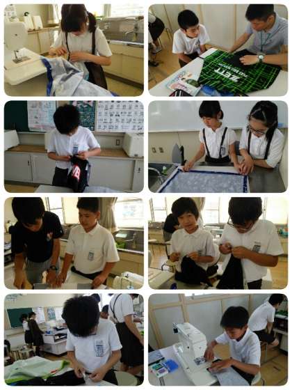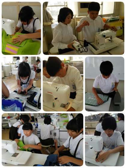 2時間目に、6年2組は家庭科室でエプロン制作実習をしました。